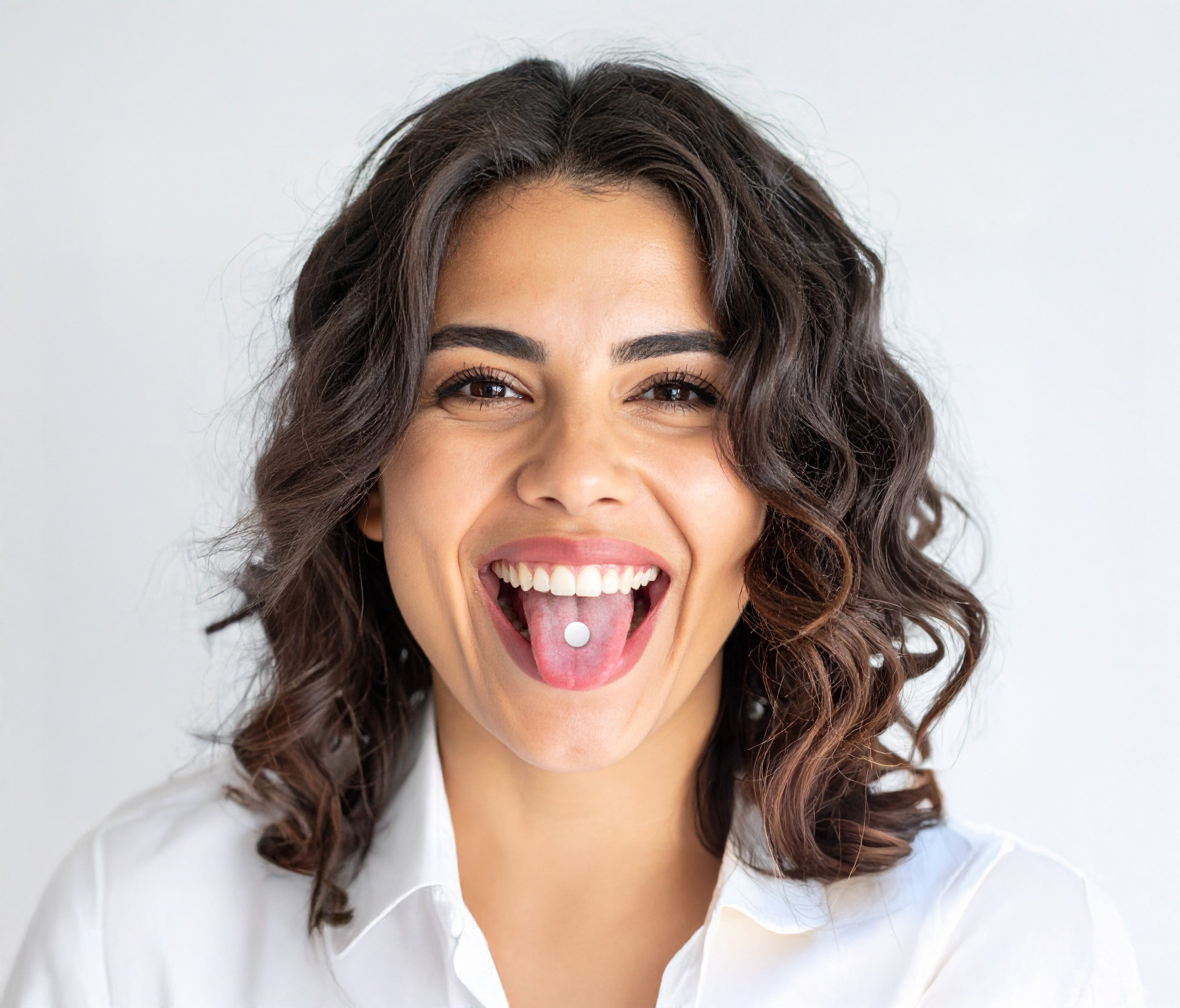 Place the multivitamin with iron tablet on your tongue and allow it to dissolve—no chewing and no water needed.
