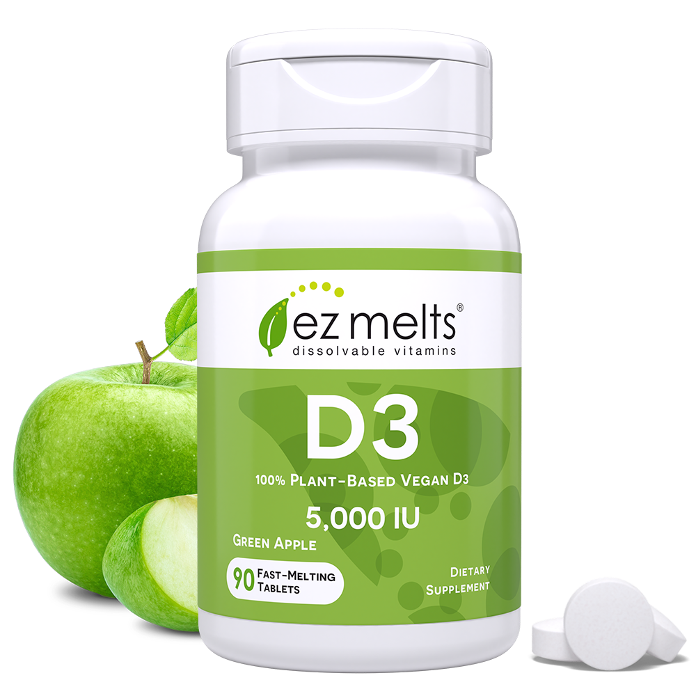 Place the vitamin D3 tablet on your tongue and allow it to dissolve—no chewing and no water needed.